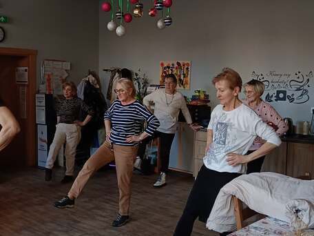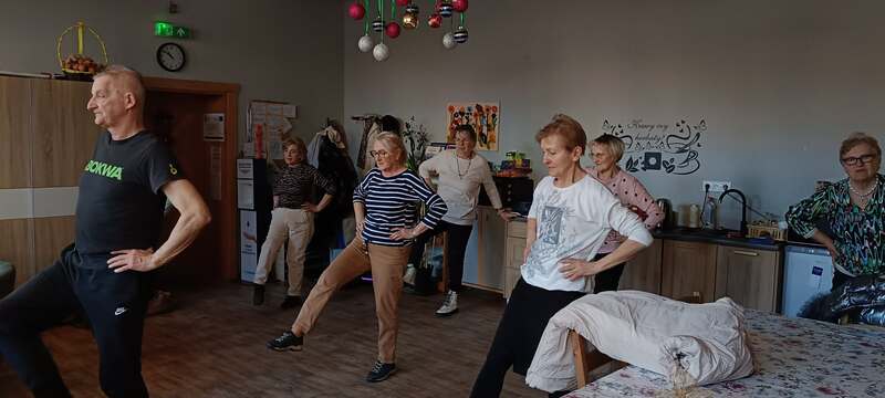 W ramach działań projektowych Seniorzy uczestniczą w zajęciach taneczno-ruchowych, które łączą przyjemność aktywności fizycznej z relaksującą muzyką. Regularny ruch wpływa korzystnie na kondycję, koordynację oraz ogólne samopoczucie, a wspólne ćwiczenia sprzyjają integracji i budowaniu pozytywnych relacji w grupie.