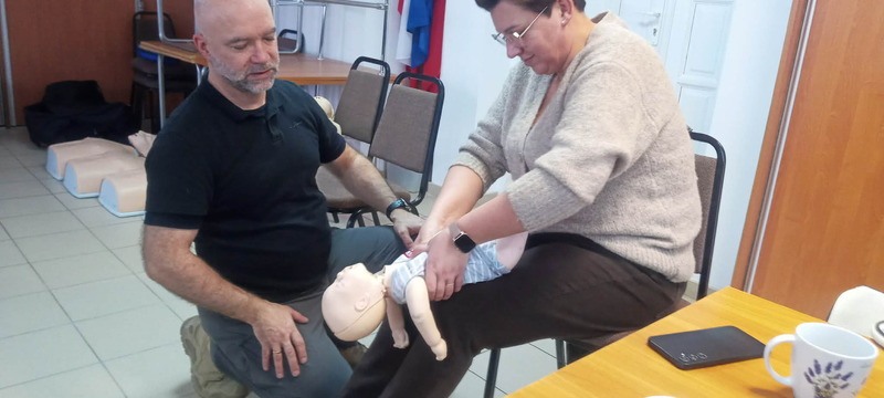 Istotnym elementem szkolenia było także omówienie zasad postępowania w nagłych stanach zagrożenia życia, takich jak: